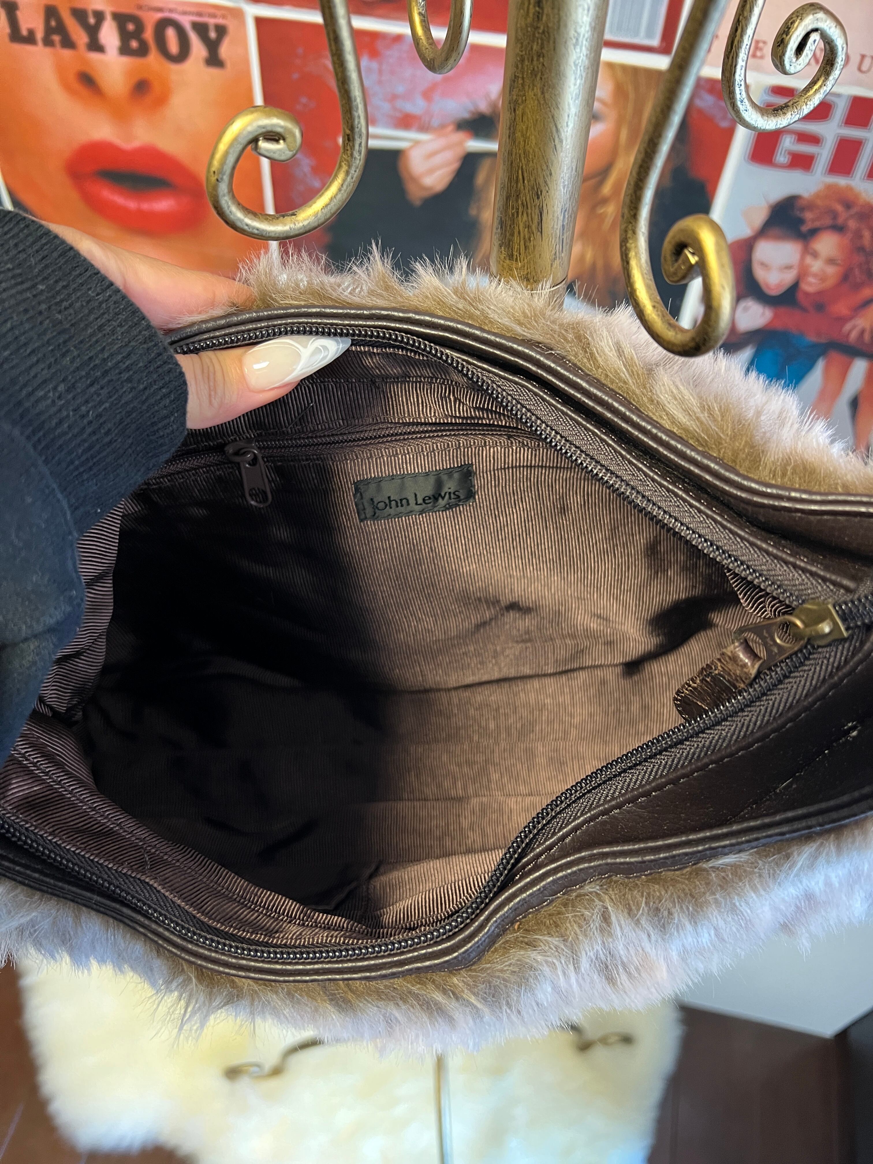 財布、ハンカチ、化粧ポーチ、スマートフォンはしっかり入る大きさになっています。ファーバッグはこの冬にピッタリ!!