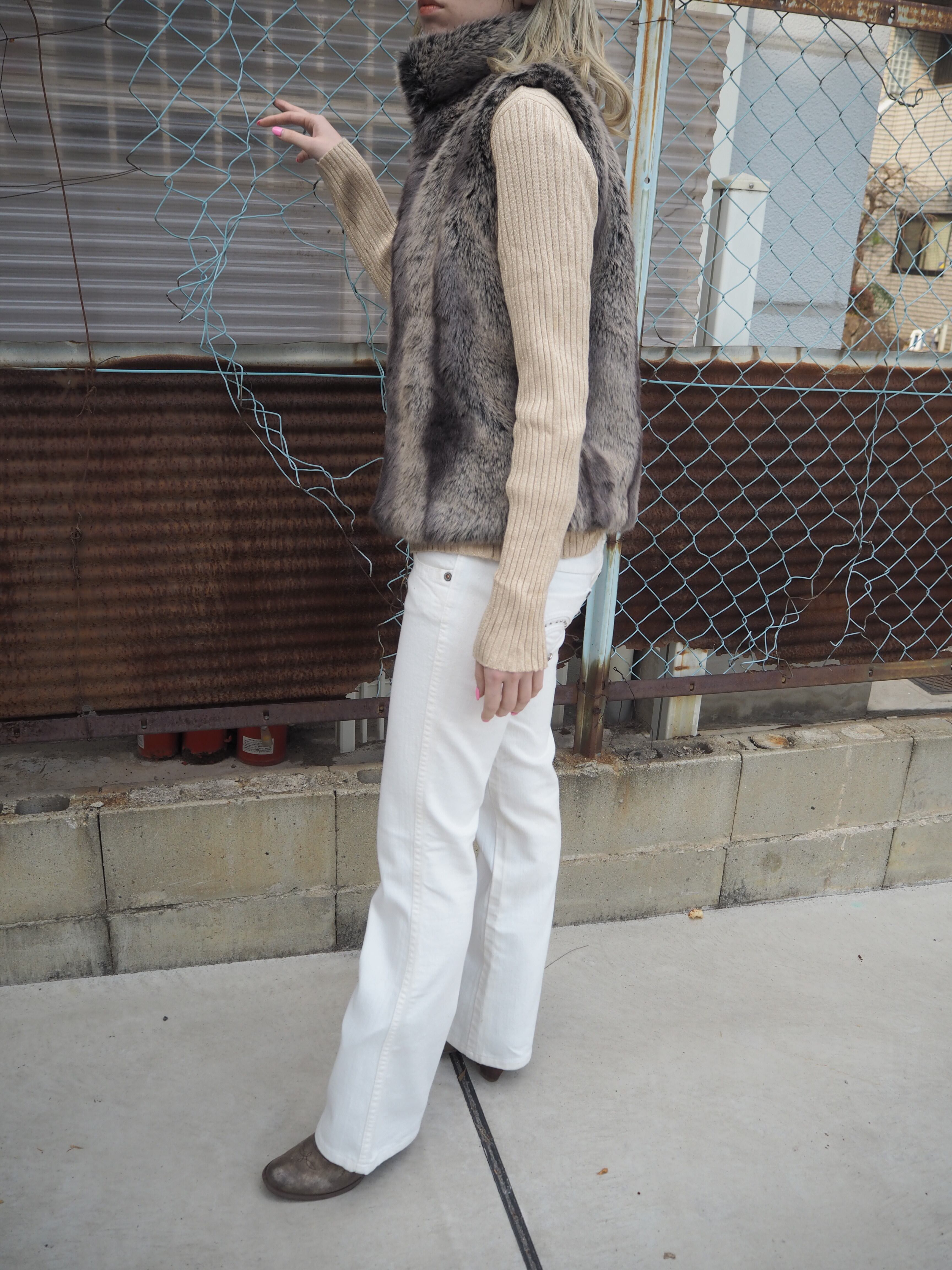 フェイクファーですが存在感がしっかりあり上品です。これからまだちょっと寒さ続く時にセーターに合わせたり春先でも着れる一枚です。