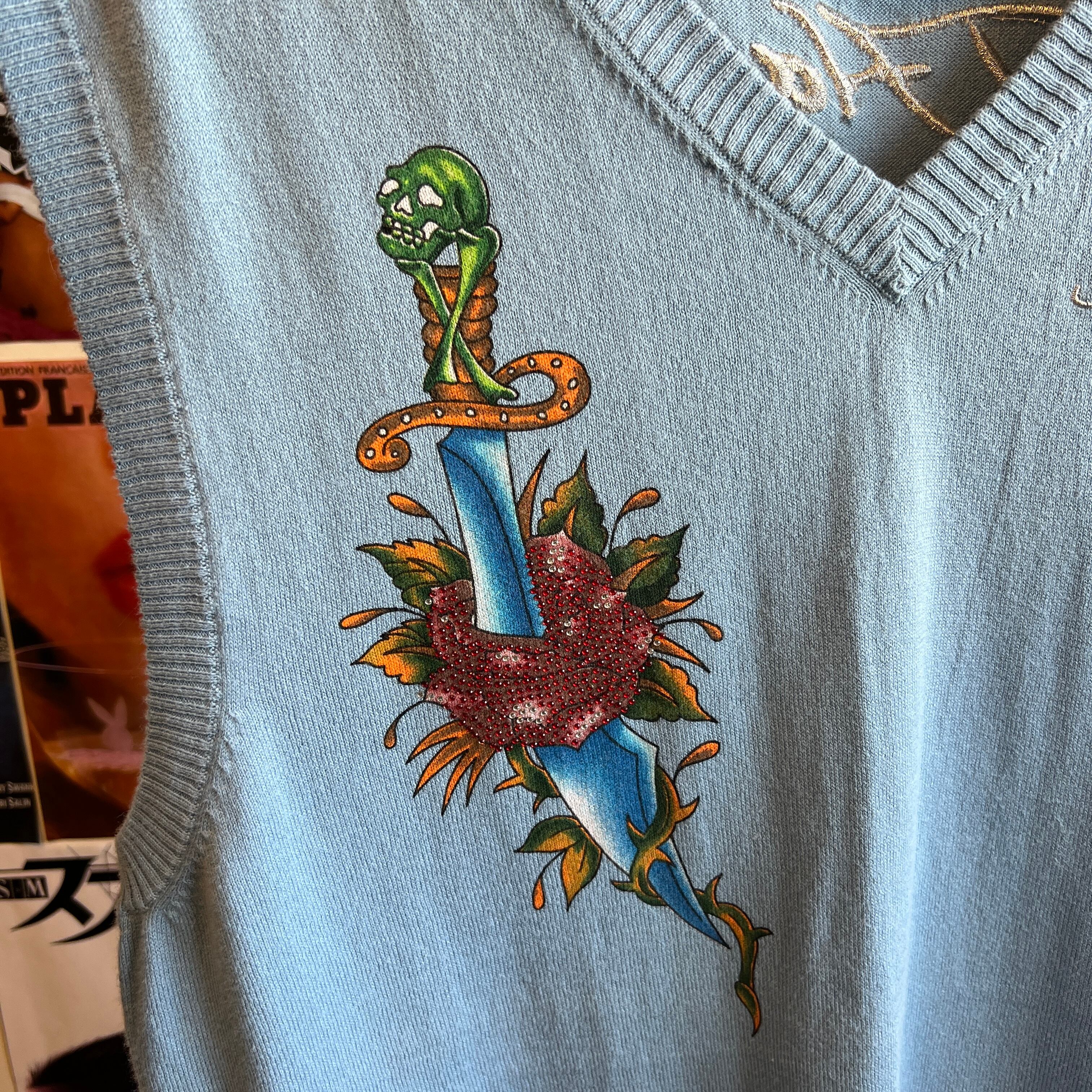 目を引く綺麗なライトブルーとラインストーンのデザインが可愛いこのタンクトップは、ワンピースとして着たり、中にトップスを合わせても可愛い!