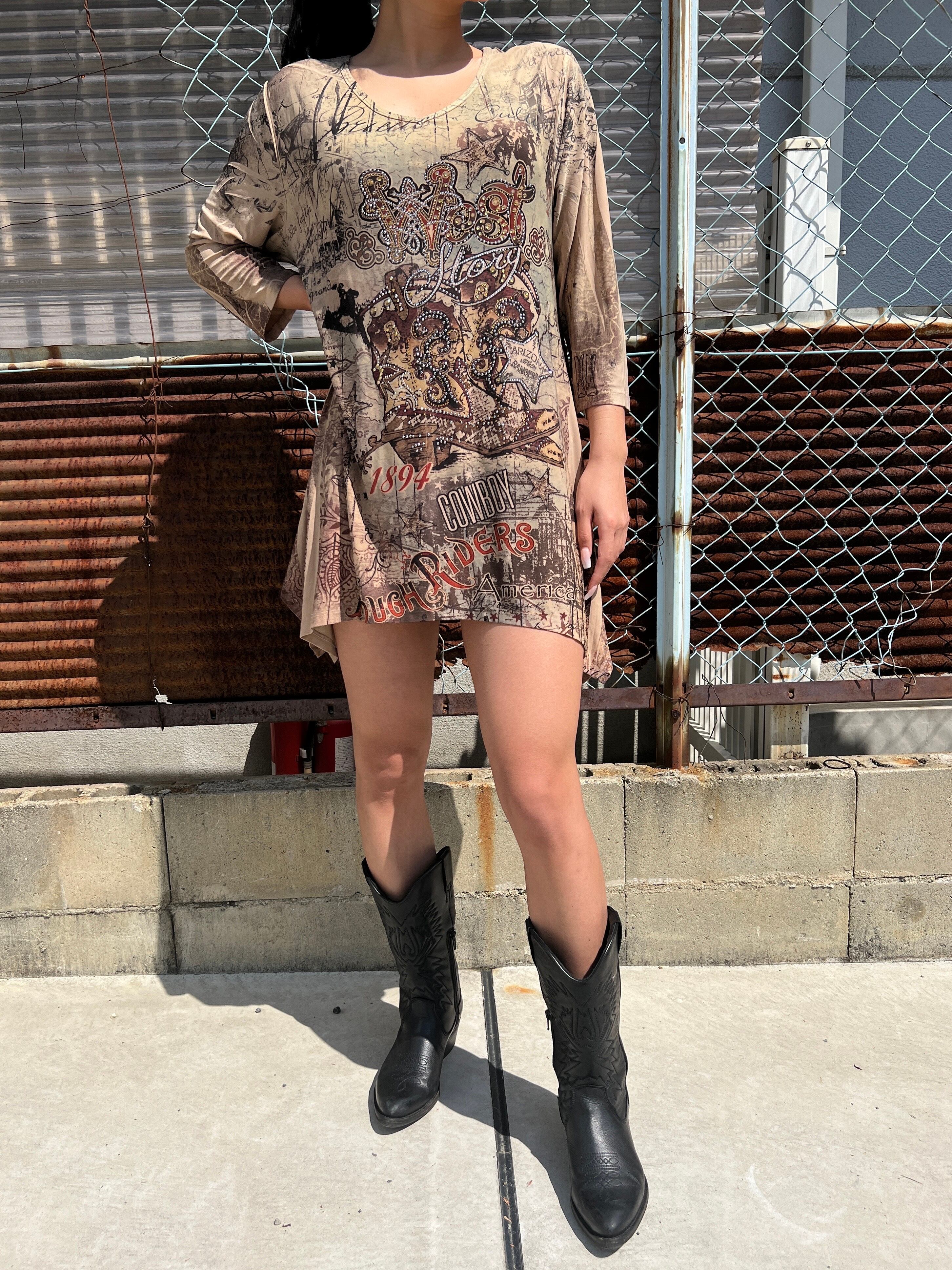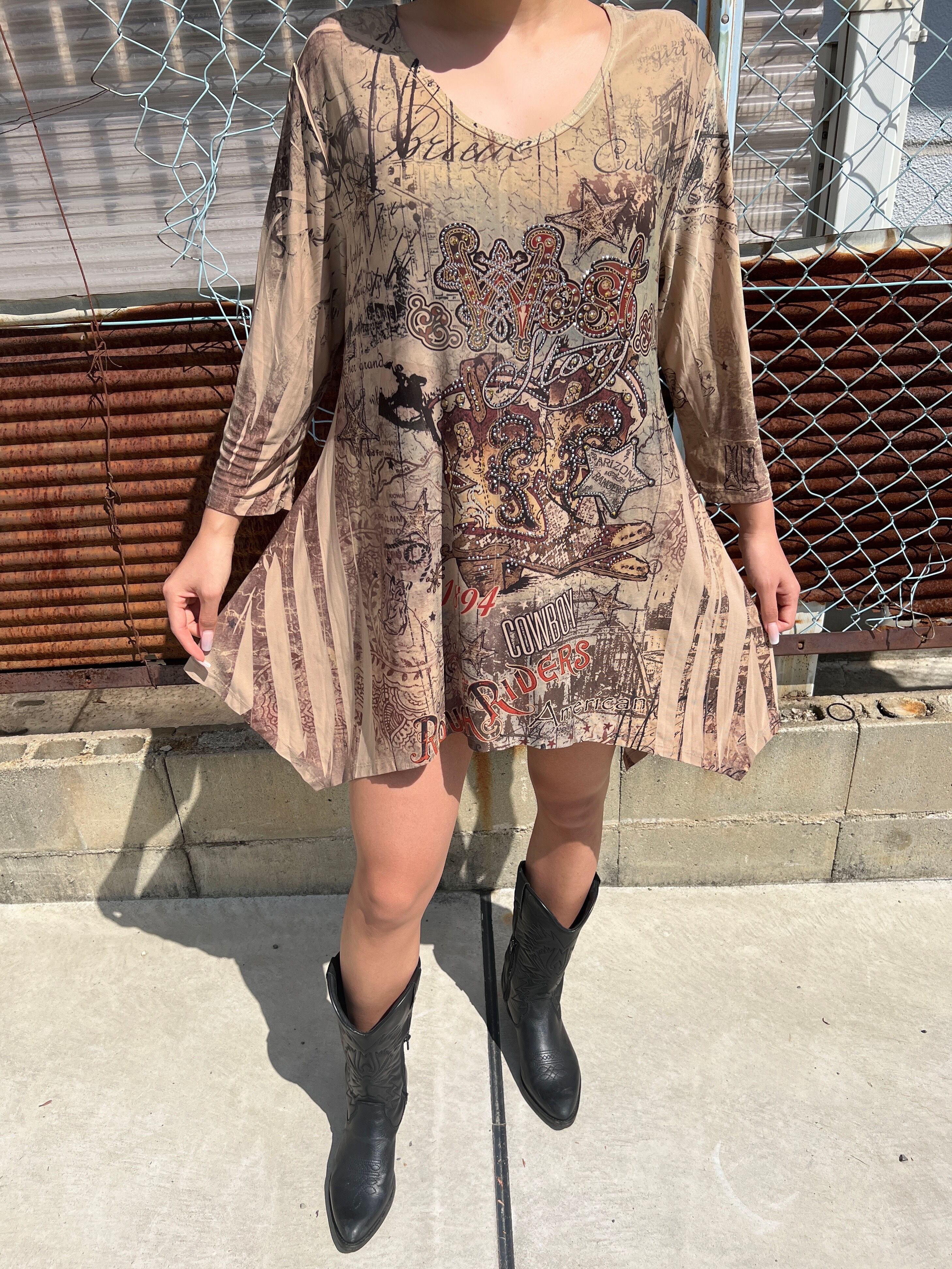ラインストーンが目立つウェスタン風ワンピース!